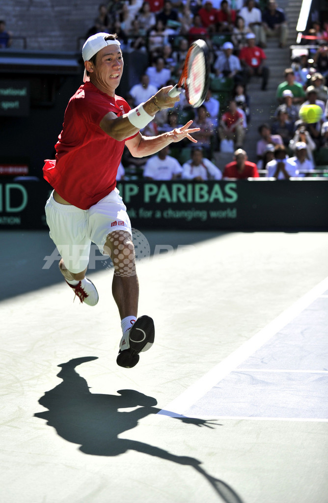 【9月18日 AFP】男子テニス国別対抗戦、デビスカップ(Davis Cup 2011)は18日、東京の有明コロシアム(Ariake Coliseum)で日本とインドによるワールドグループプレーオフが行われ、日本は3日目のシングルスで錦織圭(Kei Nishikori)が勝利し、日本は27年ぶりとなるワールドグループ復帰を決めた。