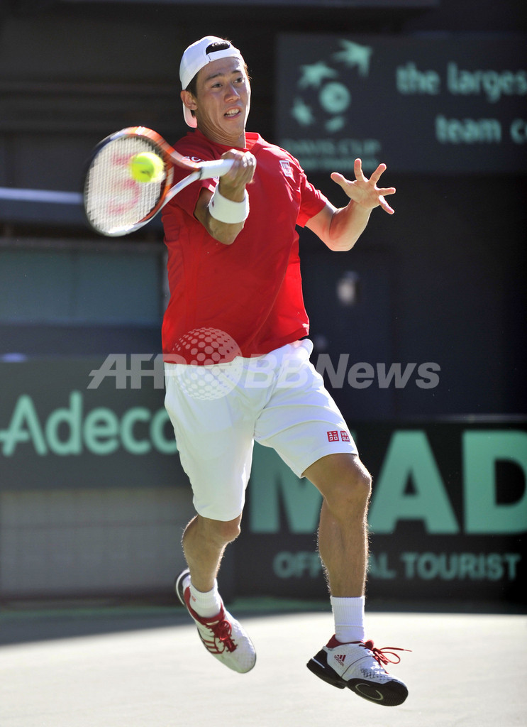 【9月18日 AFP】男子テニス国別対抗戦、デビスカップ(Davis Cup 2011)は18日、東京の有明コロシアム(Ariake Coliseum)で日本とインドによるワールドグループプレーオフが行われ、日本は3日目のシングルスで錦織圭(Kei Nishikori)が勝利し、日本は27年ぶりとなるワールドグループ復帰を決めた。