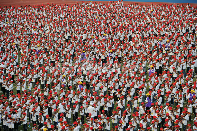 ニュース ライフ こぼれ話 4645人でバイオリン演奏、86年ぶりにギネス記録更新 台湾 2011年9月19日 9:08 発信地:台北/台湾 [ 中国・台湾 台湾 ] このニュースをシェア ‹ › ❮ 1/5 ❯ 台湾・彰化(Changhua)県で一斉にバイオリンを演奏する子どもたち(2011年9月18日撮影)。(c)AFP/Sam YEH 画像作成中 ! 【9月19日 AFP】台湾中部の彰化(Changhua)県で18日、18歳未満の子ども4645人が一斉にバイオリンを演奏し、同時に大勢でバイオリンを演奏するギネス世界記録(Guinness World Records)を86年ぶりに更新した。これまでの記録は1925年にロンドン(London)で樹立された4000人だった。(c)AFP ライフ 一覧へ> メディア・報道関係・法人の方向け 写真・動画 購入のお問合せ>