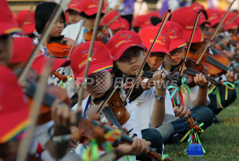 ニュース ライフ こぼれ話 4645人でバイオリン演奏、86年ぶりにギネス記録更新 台湾 2011年9月19日 9:08 発信地:台北/台湾 [ 中国・台湾 台湾 ] このニュースをシェア ‹ › ❮ 3/5 ❯ 台湾・彰化(Changhua)県で一斉にバイオリンを演奏する子どもたち(2011年9月18日撮影)。(c)AFP/Sam YEH 画像作成中 ! 【9月19日 AFP】台湾中部の彰化(Changhua)県で18日、18歳未満の子ども4645人が一斉にバイオリンを演奏し、同時に大勢でバイオリンを演奏するギネス世界記録(Guinness World Records)を86年ぶりに更新した。これまでの記録は1925年にロンドン(London)で樹立された4000人だった。(c)AFP ライフ 一覧へ> メディア・報道関係・法人の方向け 写真・動画 購入のお問合せ>