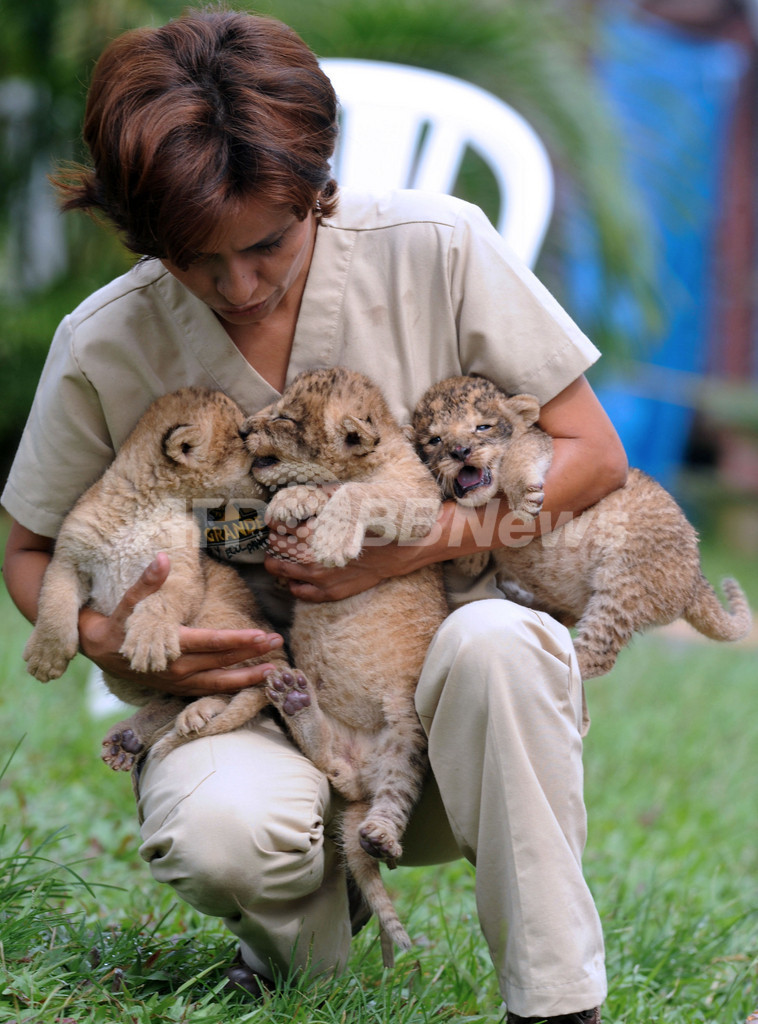 ニュース ライフ こぼれ話 ミルクを飲むライオンの赤ちゃん、ホンジュラス 2011年9月20日 21:02 発信地:ホンジュラス [ 中南米 ホンジュラス ] このニュースをシェア ‹ › ❮ 5/5 ❯ 中米ホンジュラス北部コルテス(Cortes)県のエコパーク動物園「Joya Grande」で新たに生まれたライオンの赤ちゃんたちを抱きかかえる獣医(2011年9月17日撮影)。(c)AFP/Orlando SIERRA 画像作成中 ! 【9月20日 AFP】中米ホンジュラス北部コルテス(Cortes)県のエコパーク動物園「Joya Grande」で、3頭のライオンの赤ちゃんがすくすくと育っている。(c)AFP ライフ 一覧へ> メディア・報道関係・法人の方向け 写真・動画 購入のお問合せ>