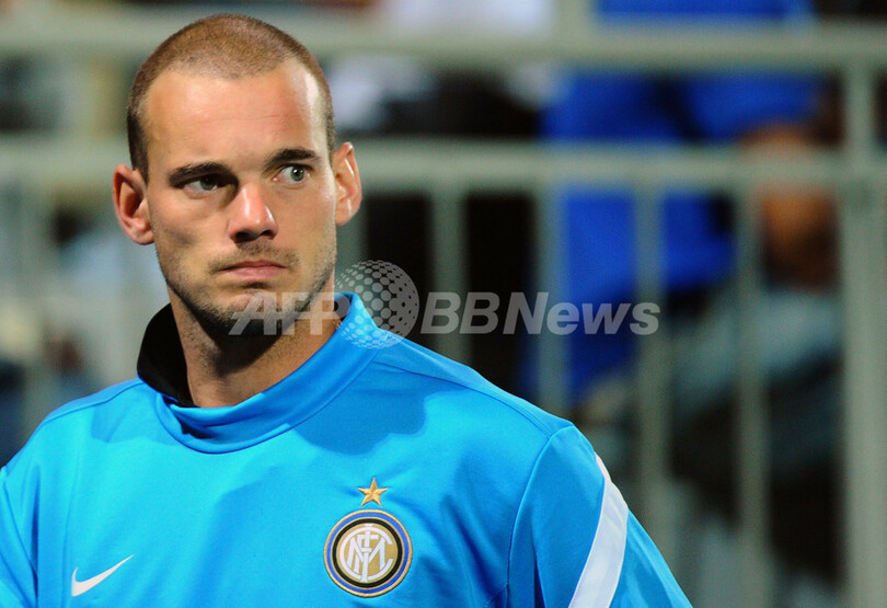 ベンチから去るインテルのウェズレイ・スナイデル(Wesley Sneijder、2011年9月20日撮影)。(c)AFP/OLIVIER MORIN