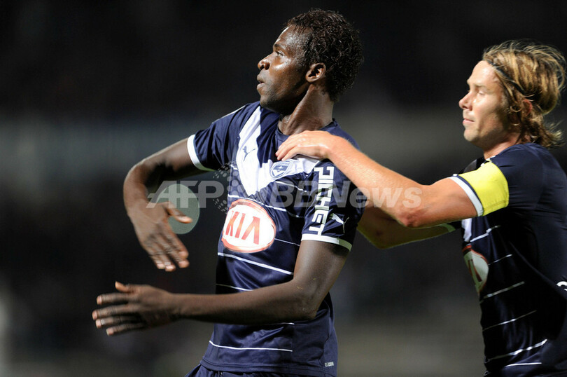 前半8分に先制点を挙げて歓喜するボルドーのシェイク・ティディアン・ディアバテ(Cheick Diabate、左、2011年9月20日撮影)。(c)AFP/NICOLAS TUCAT