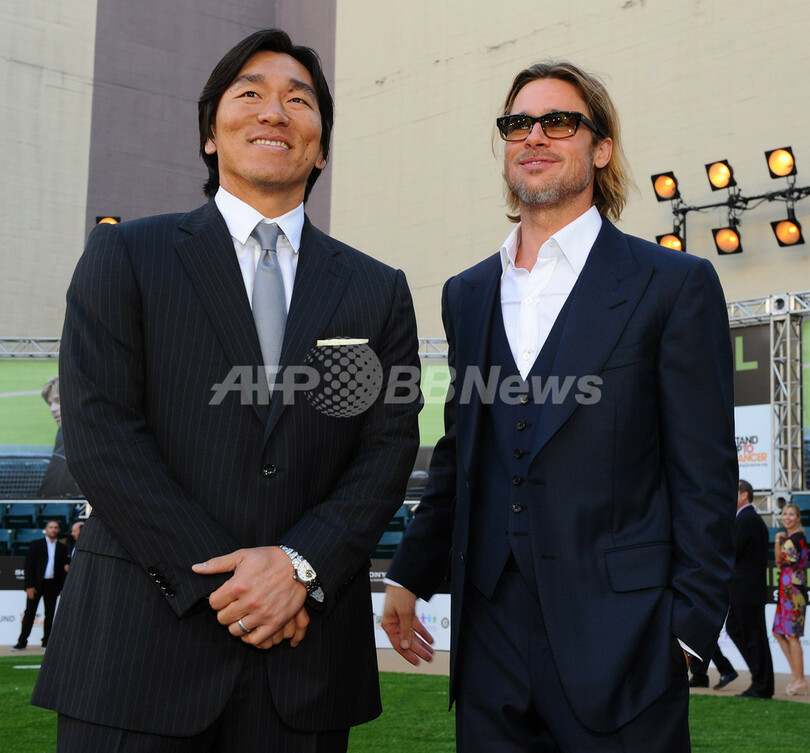 松井秀喜、ブラピと対面 映画『マネーボール』のプレミアで