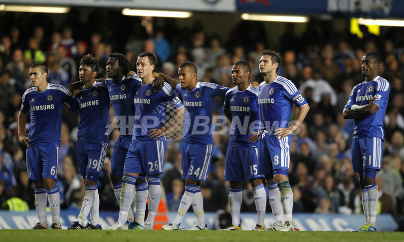 PK戦を見守るチェルシーの選手(2011年9月21日撮影)。(c)AFP/IAN KINGTON