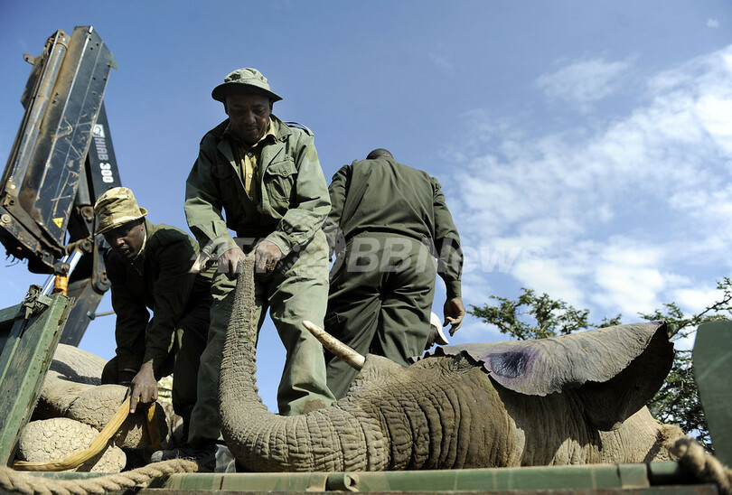 【9月23日 AFP】ケニア南西の町ナロク(Narok)郊外で22日、作物を荒らすなど多発するゾウ被害対策として、気性の荒いゾウ50頭をマサイマラ国立保護区(Maasai Mara Game Reserve)に移送する作業が始まった。この日はヘリコプターから鎮静剤の矢を放って4頭を捕獲した。(c)AFP