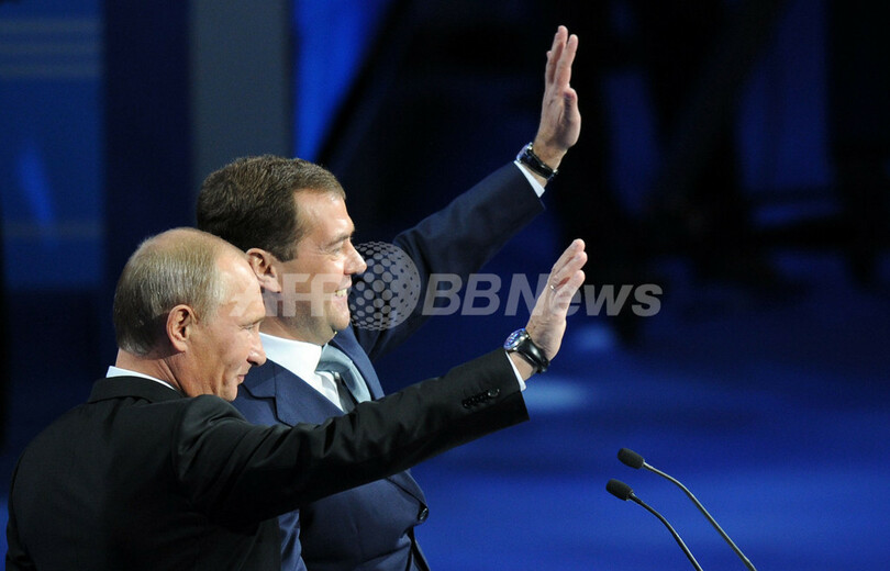 【9月24日 AFP】(写真追加)ロシアのドミトリー・メドベージェフ(Dmitry Medvedev)大統領は24日、ウラジーミル・プーチン(Vladimir Putin)首相が2012年の大統領選挙に与党・統一ロシア(United Russia)の候補者として立候補すべきだと述べた。