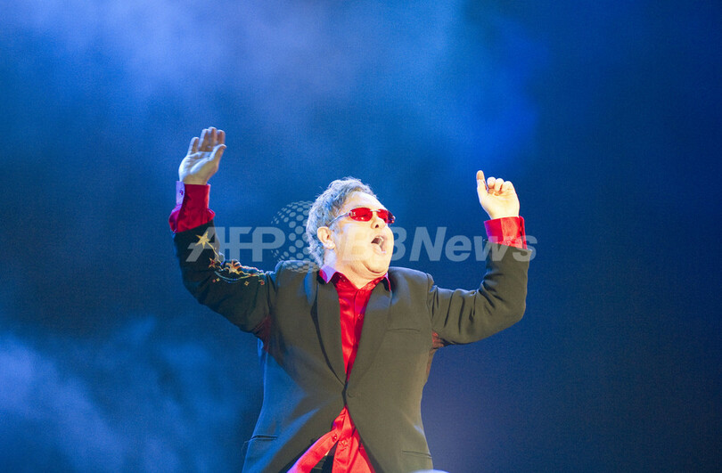 写真は、パフォーマンスを披露するエルトン・ジョン(2011年9月23日撮影)。(c)AFP/ANTONIO SCORZA