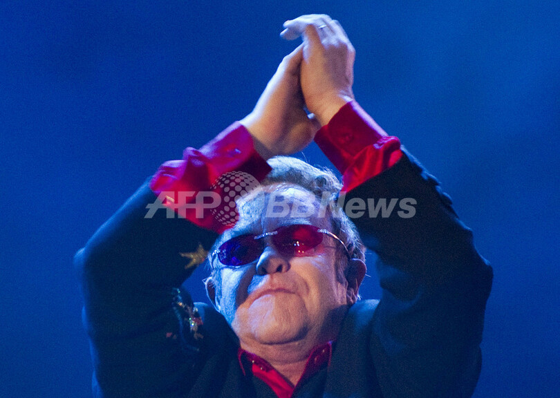 写真は、パフォーマンスを披露するエルトン・ジョン(2011年9月23日撮影)。(c)AFP/ANTONIO SCORZA