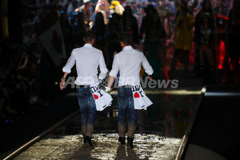 【9月26日 AFP】イタリア・ミラノ市内で20日から27日まで12年春夏ミラノコレクションが開かれている。26日には、ディーン・ケイティン(Dean Caten)とダン・ケイティン(Dan Caten)兄弟が手がける「ディースクエアード(Dsquared2)」が新作を発表した。(c)AFP