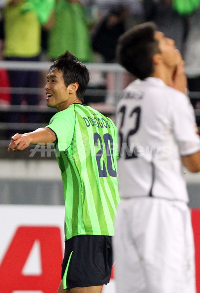 14日に本拠地の長居スタジアム(Nagai Stadium)で行われた第1戦を4-3で勝利していたセレッソだったが、迎えた第2戦は全北現代の李同国(Lee Dong-Gook、イ・ドングク)に4得点を許すなど圧倒的に試合を支配され、準決勝進出を逃した。(c)AFP/Aidan Jones