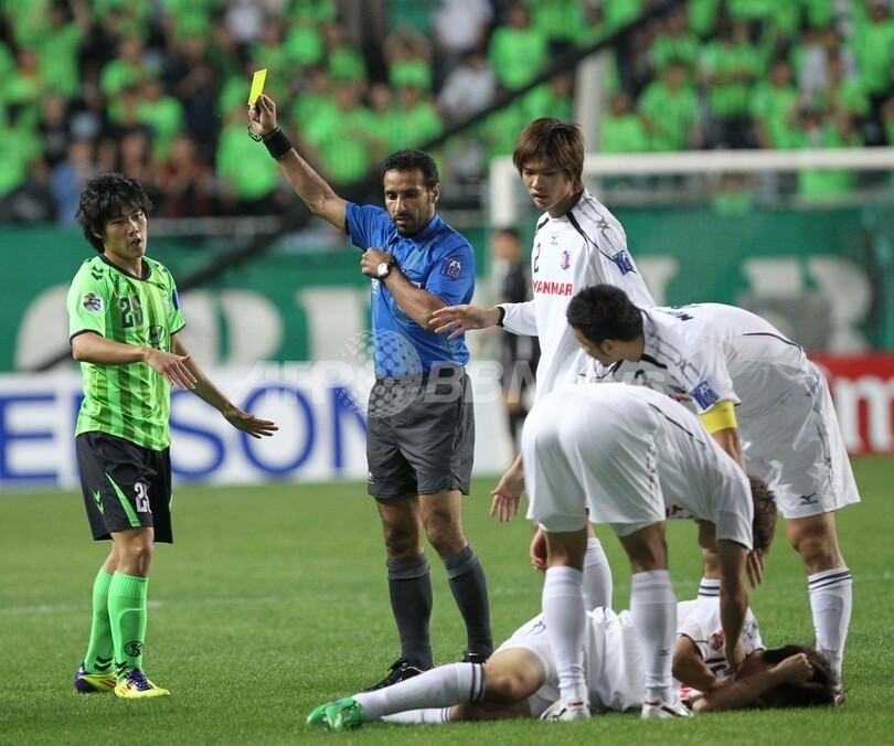 14日に本拠地の長居スタジアム(Nagai Stadium)で行われた第1戦を4-3で勝利していたセレッソだったが、迎えた第2戦は全北現代の李同国(Lee Dong-Gook、イ・ドングク)に4得点を許すなど圧倒的に試合を支配され、準決勝進出を逃した。(c)AFP/Aidan Jones