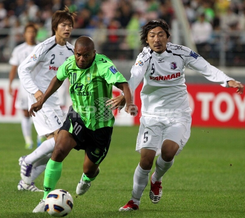 14日に本拠地の長居スタジアム(Nagai Stadium)で行われた第1戦を4-3で勝利していたセレッソだったが、迎えた第2戦は全北現代の李同国(Lee Dong-Gook、イ・ドングク)に4得点を許すなど圧倒的に試合を支配され、準決勝進出を逃した。(c)AFP/Aidan Jones