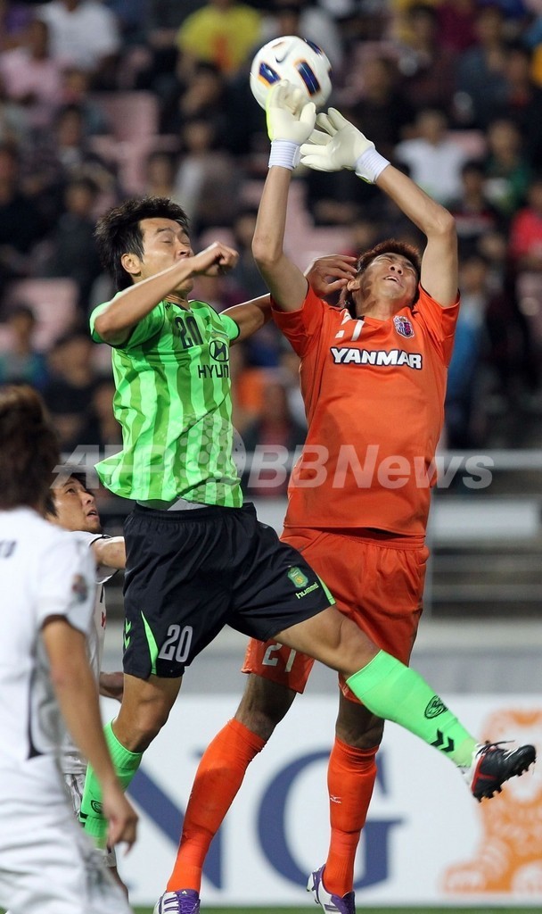 14日に本拠地の長居スタジアム(Nagai Stadium)で行われた第1戦を4-3で勝利していたセレッソだったが、迎えた第2戦は全北現代の李同国(Lee Dong-Gook、イ・ドングク)に4得点を許すなど圧倒的に試合を支配され、準決勝進出を逃した。(c)AFP/Aidan Jones