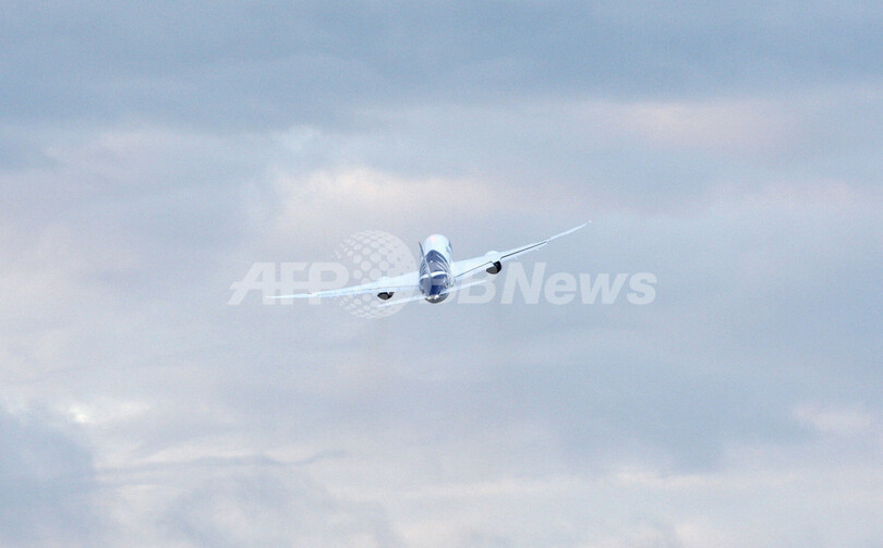 写真は米ワシントン州エバレットのペインフィールド空港を離陸したボーイング787ドリームライナー1号機(2011年9月27日撮影)。(c)AFP/KEVIN P. CASEY