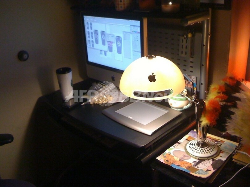 デザイン専門サイト「BuyMeDesign.com」が選ぶ、リサイクル素材を使った斬新なランプを紹介。写真はiMacのパーツをリサイクルした「iMac lamp」。デザイナーはRandall Littleton。(c)Relaxnews/Randall Littleton - www.buymedesign.com