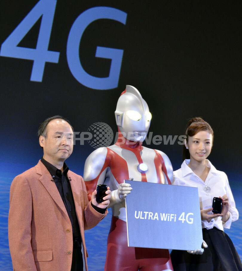ニュース テクノロジー 次世代通信サービス「ソフトバンク4G」発表 2011年9月30日 11:31 発信地:東京 [ アジア・オセアニア 東京 ] このニュースをシェア ‹ › ❮ 5/6 ❯ ソフトバンク(Softbank)の新製品と新サービスに関する記者発表会で、次世代高速無線通信サービス「ソフトバンク4G」を発表する(左から)孫正義(Masayoshi Son)社長、ウルトラマン、上戸彩(Aya Ueto)さん(2011年9月29日撮影)。(c)AFP/Yoshikazu TSUNO 画像作成中 ! 【9月30日 AFP】ソフトバンク(Softbank)は29日、新モバイル無線LANルータ「ウルトラワイファイ4G(Ultra Wi-Fi 4G)を来年から提供し、次世代高速無線通信サービス「ソフトバンク4G」を開始すると発表した。また、同社の3G(第3世代携帯電話)高速無線通信サービスに対応した「ウルトラフォン(ULTRA PHONE)」など、スマートフォンの新製品も発表した。(c)AFP テクノロジー 一覧へ> メディア・報道関係・法人の方向け 写真・動画 購入のお問合せ>