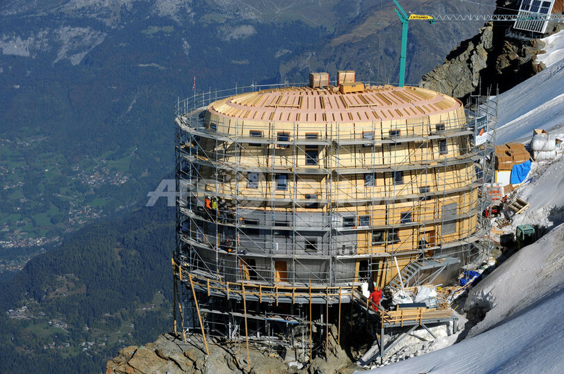 【10月3日 AFP】西欧最高峰モンブラン(Mont Blanc)山頂への途中にあるドーム・デュ・グーテ(Dome du Gouter、標高4304メートル)の「グーテ小屋(Refuge du Gouter)」で、改築工事が続いている。