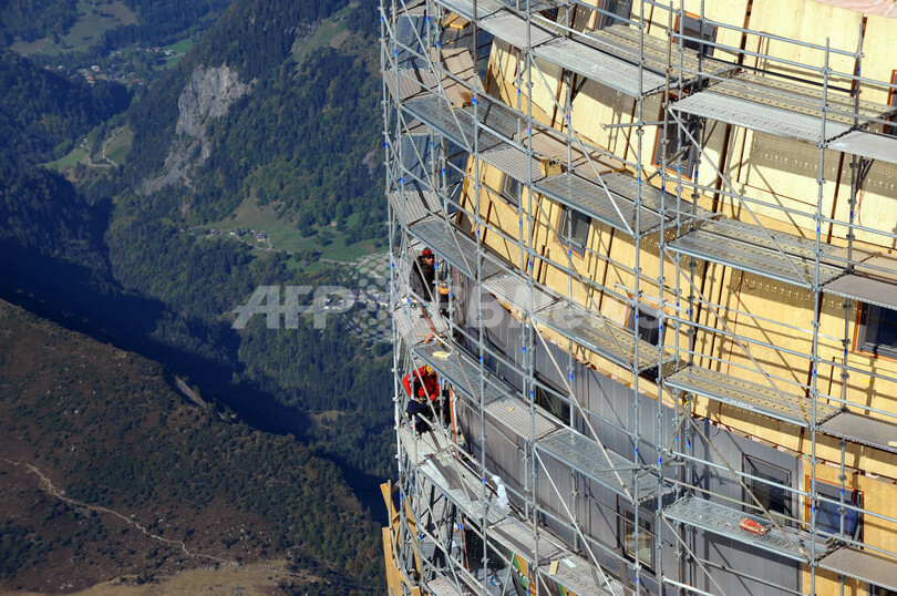【10月3日 AFP】西欧最高峰モンブラン(Mont Blanc)山頂への途中にあるドーム・デュ・グーテ(Dome du Gouter、標高4304メートル)の「グーテ小屋(Refuge du Gouter)」で、改築工事が続いている。