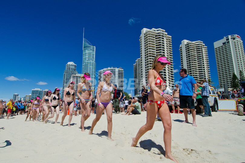 ビキニ姿の女性たちがパレード、ギネスに挑戦 豪州