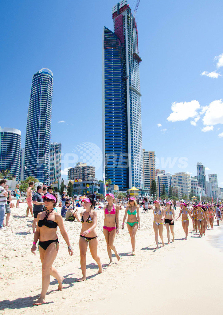ビキニ姿の女性たちがパレード、ギネスに挑戦 豪州