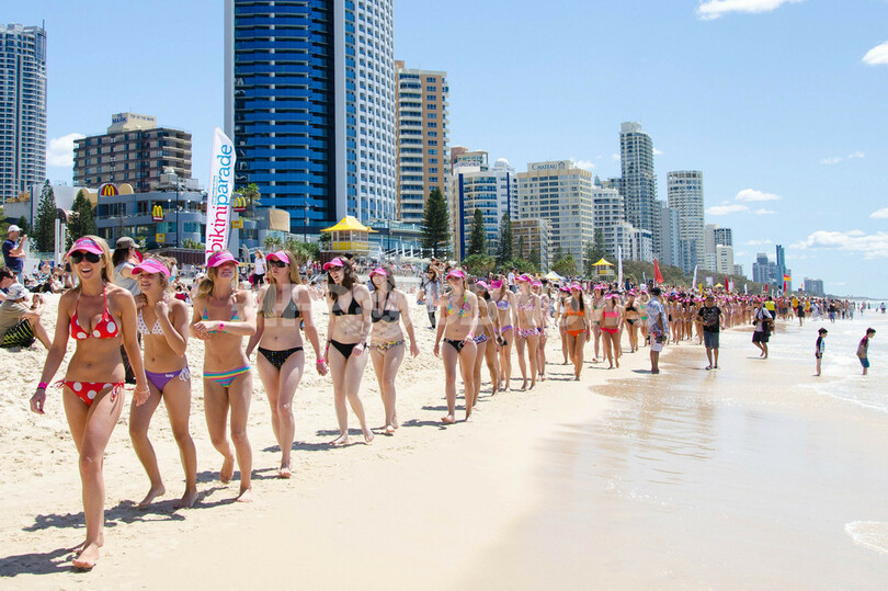 ビキニ姿の女性たちがパレード、ギネスに挑戦 豪州