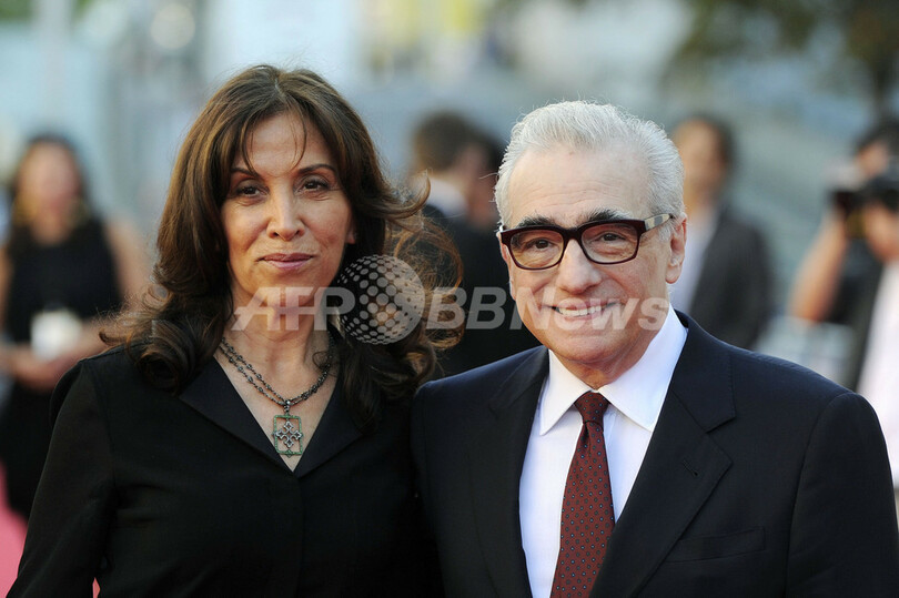 写真は、レッドカーペットに登場したスコセッシ監督(右)とジョージの妻オリビア(Olivia Harrison)さん(2011年10月2日撮影)。(c)AFP/FACUNDO ARRIZABALAGA
