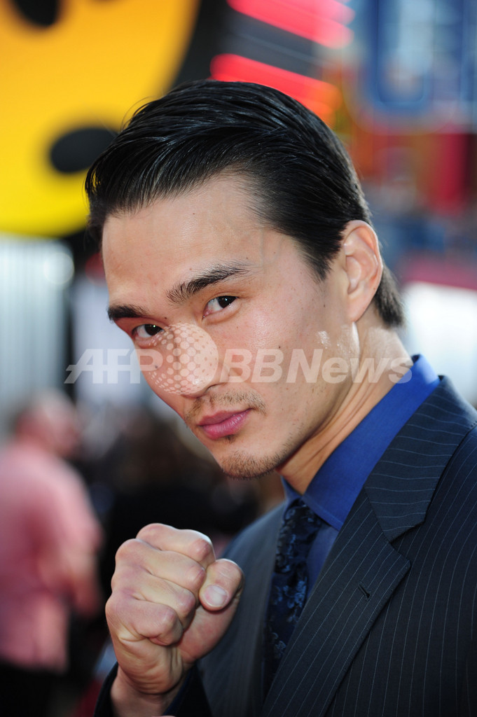 ヒュー・ジャックマン(Hugh Jackman)主演の新作映画『リアル・スティール(Real Steel)』のワールドプレミアが2日、米カリフォルニア(California)州ユニバーサルシティー(Universal City)で開催された。同作品の日本公開は12月9日。写真は、レッドカーペットに登場した共演者のカール・ユーン(Karl Yune、2011年10月2日撮影)。(c)AFP/ROBYN BECK