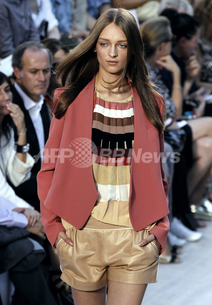 【10月4日 AFP】フランス・パリ市内で9月27日から10月5日まで12年春夏パリ・コレクションが開かれている。3日には、クレア・ワイト ・ケラー(Clare Waight Keller)が手がける「クロエ(Chloé)」が新作を発表した。(c)AFP 【関連情報】 ◆特集:12年春夏コレクション ◆クロエ 11/12年秋冬コレクション