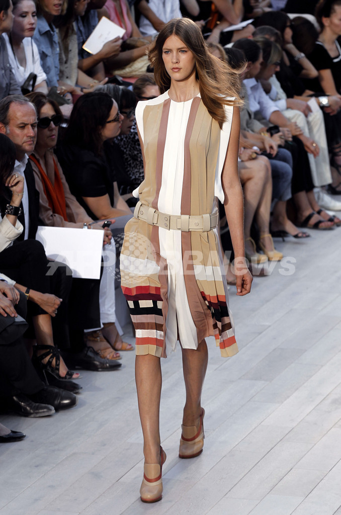 【10月4日 AFP】フランス・パリ市内で9月27日から10月5日まで12年春夏パリ・コレクションが開かれている。3日には、クレア・ワイト ・ケラー(Clare Waight Keller)が手がける「クロエ(Chloé)」が新作を発表した。(c)AFP 【関連情報】 ◆特集:12年春夏コレクション ◆クロエ 11/12年秋冬コレクション