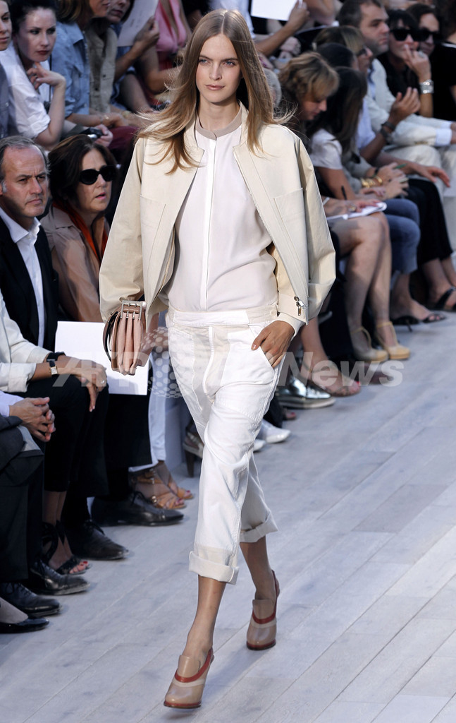 【10月4日 AFP】フランス・パリ市内で9月27日から10月5日まで12年春夏パリ・コレクションが開かれている。3日には、クレア・ワイト ・ケラー(Clare Waight Keller)が手がける「クロエ(Chloé)」が新作を発表した。(c)AFP 【関連情報】 ◆特集:12年春夏コレクション ◆クロエ 11/12年秋冬コレクション