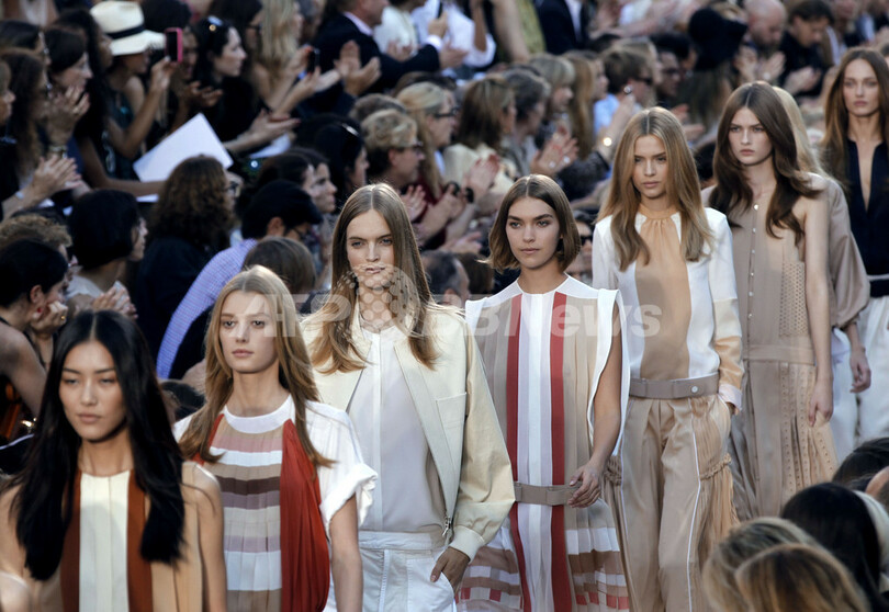 【10月4日 AFP】フランス・パリ市内で9月27日から10月5日まで12年春夏パリ・コレクションが開かれている。3日には、クレア・ワイト ・ケラー(Clare Waight Keller)が手がける「クロエ(Chloé)」が新作を発表した。(c)AFP 【関連情報】 ◆特集:12年春夏コレクション ◆クロエ 11/12年秋冬コレクション