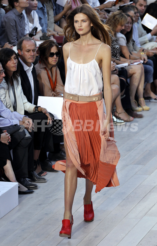【10月4日 AFP】フランス・パリ市内で9月27日から10月5日まで12年春夏パリ・コレクションが開かれている。3日には、クレア・ワイト ・ケラー(Clare Waight Keller)が手がける「クロエ(Chloé)」が新作を発表した。(c)AFP 【関連情報】 ◆特集:12年春夏コレクション ◆クロエ 11/12年秋冬コレクション