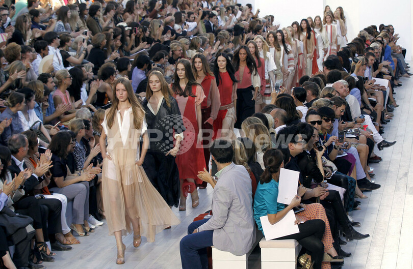 【10月4日 AFP】フランス・パリ市内で9月27日から10月5日まで12年春夏パリ・コレクションが開かれている。3日には、クレア・ワイト ・ケラー(Clare Waight Keller)が手がける「クロエ(Chloé)」が新作を発表した。(c)AFP 【関連情報】 ◆特集:12年春夏コレクション ◆クロエ 11/12年秋冬コレクション