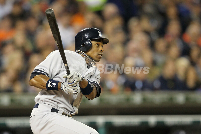 5回に適時二塁打を放つニューヨーク・ヤンキースのカーティス・グランダーソン(Curtis Granderson、2011年10月4日撮影)。(c)AFP/Getty Images/Leon Halip