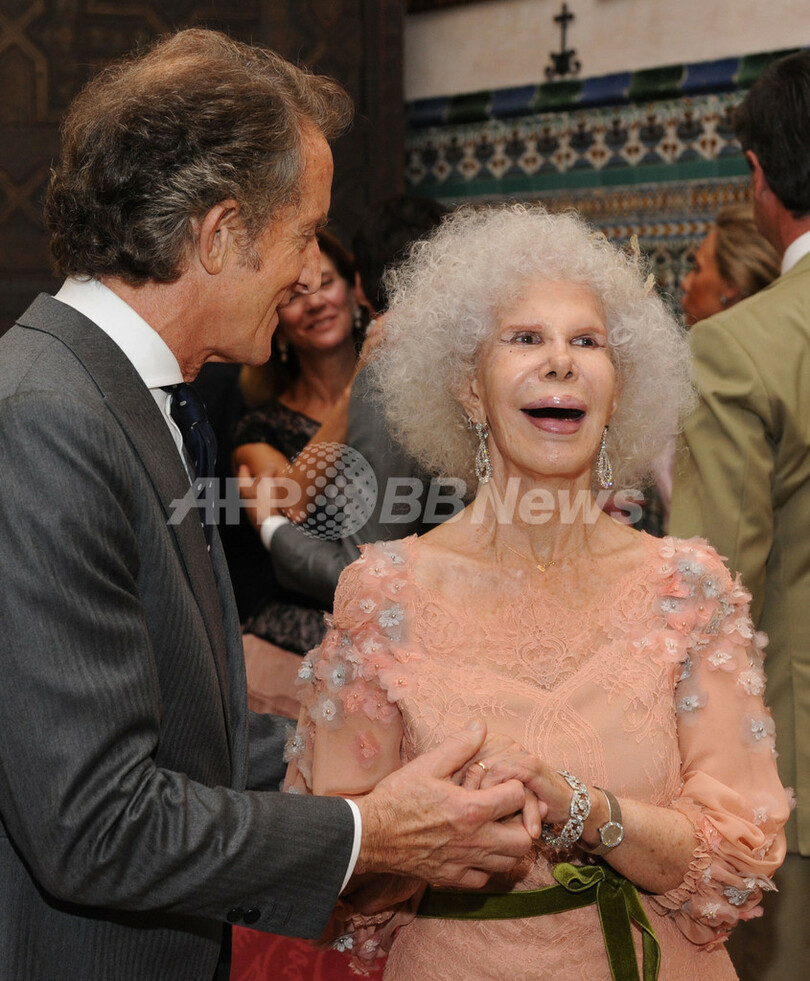 2度の夫との死別を経験してきたアルバ公爵夫人はこの日、アンダルシア州(Andalucia)州セビリア(Seville)にある15世紀建築の自邸、パラシオ・デ・ラス・デゥエナス(Palacio de las Duenas)の敷地内にあるチャペルで数十人が祝福する中、結婚式を行った。