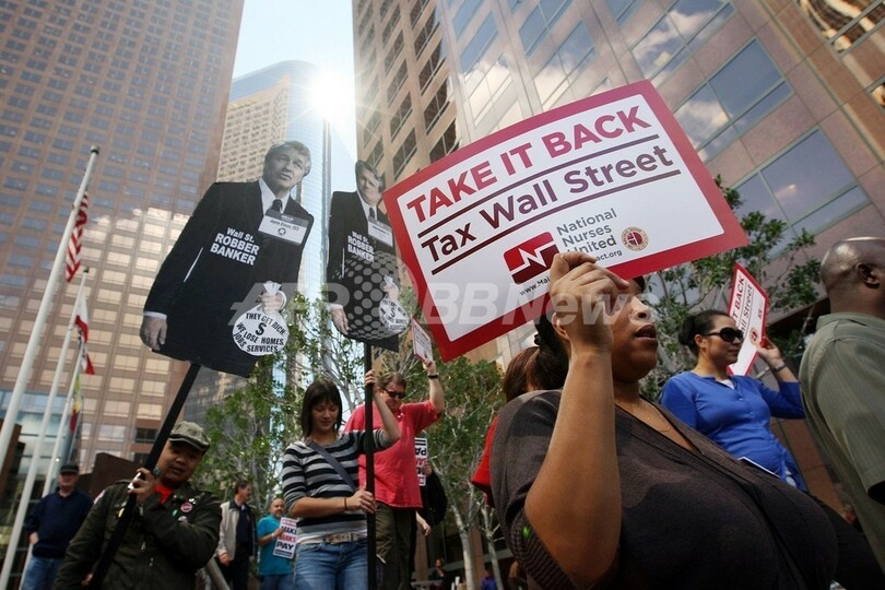 ワシントンでは、改革を求めて約1000人が中心部の広場フリーダム・プラザ(Freedom Plaza)を占拠。ロサンゼルスでは約500人がデモ行進を行い、金融大手バンク・オブ・アメリカ(Bank of America)の店舗でロビーに座り込んだ男性6人と女性5人が警察に拘束された。一連のデモのきっかけになったウォール街でも、労組支持者なども加わって5000人を超える参加者が集まった。(c)AFP