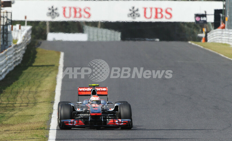 フリー走行1回目でトップとなるベストラップ1分33秒634を記録したマクラーレン・メルセデスのジェンソン・バトン(2011年10月7日撮影)。(c)AFP/TOSHIFUMI KITAMURA
