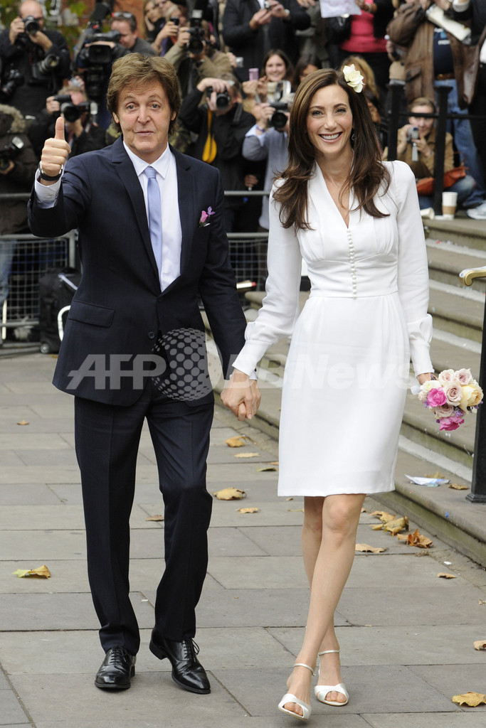 【10月10日 AFP】元ビートルズ(The Beatles)のポール・マッカートニー(Paul McCartney)さん(69)が9日、英ロンドン(London)市内で米国人女性ナンシー・シェベル(Nancy Shevell)さん(51)と結婚式を挙げた。マッカートニーさんにとっては、3度目の結婚となる。