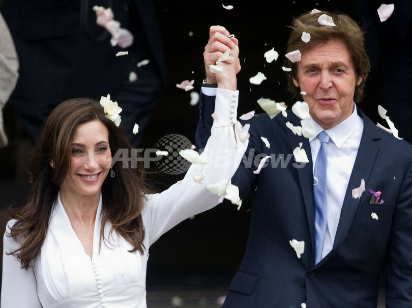 【10月10日 AFP】元ビートルズ(The Beatles)のポール・マッカートニー(Paul McCartney)さん(69)が9日、英ロンドン(London)市内で米国人女性ナンシー・シェベル(Nancy Shevell)さん(51)と結婚式を挙げた。マッカートニーさんにとっては、3度目の結婚となる。