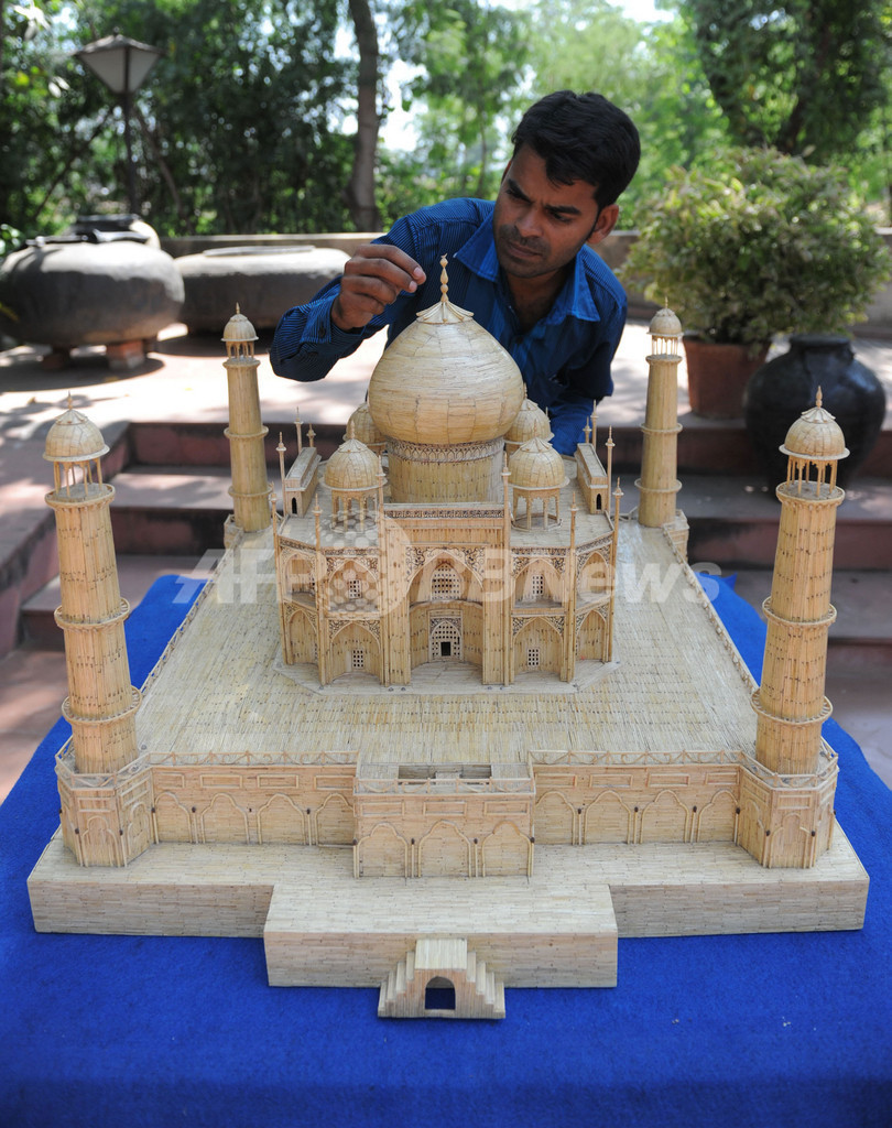 ニュース ライフ マッチ棒で作った「タージマハル」、使ったマッチは7.5万本! インド 2011年10月11日 16:04 発信地:アーメダバード/インド [ アジア・オセアニア インド ] このニュースをシェア ‹ › ❮ 2/3 ❯ インドのアーメダバード(Ahmedabad)で、マッチ棒7万5000本で作ったタージマハル(Taj Mahal)の模型を仕上げるアーティストのシェイク・サリムバイ(Shaikh Salimbhai)氏(2011年10月9日撮影)。(c)AFP 画像作成中 ! 【10月11日 AFP】インドのアーメダバード(Ahmedabad)で9日、マッチ棒で作られたタージマハル(Taj Mahal)の模型が公開された。アーティストのシェイク・サリムバイ(Shaikh Salimbhai)氏(26)が1年と19日をかけて完成させたもので、使用したマッチ棒は約7万5000本だという。(c)AFP ライフ 一覧へ> メディア・報道関係・法人の方向け 写真・動画 購入のお問合せ>