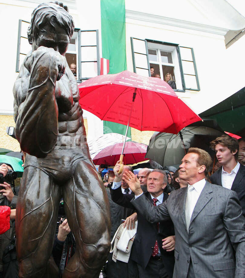 【10月11日 AFP】オーストリア・ウィーン(Vienna)南方220キロにあるタール(Thal)で7日、同市出身のアーノルド・シュワルツェネッガー(Arnold Schwarzenegger)前米カリフォルニア(California)州知事を記念した「シュワルツェネッガー博物館」の開館式が行われた。同博物館はシュワルツェネッガー氏が子ども時代を過ごした住宅を改装したもので、式には同氏や息子のパトリック(Patrick Schwarzenegger)さんも出席した。(c)AFP