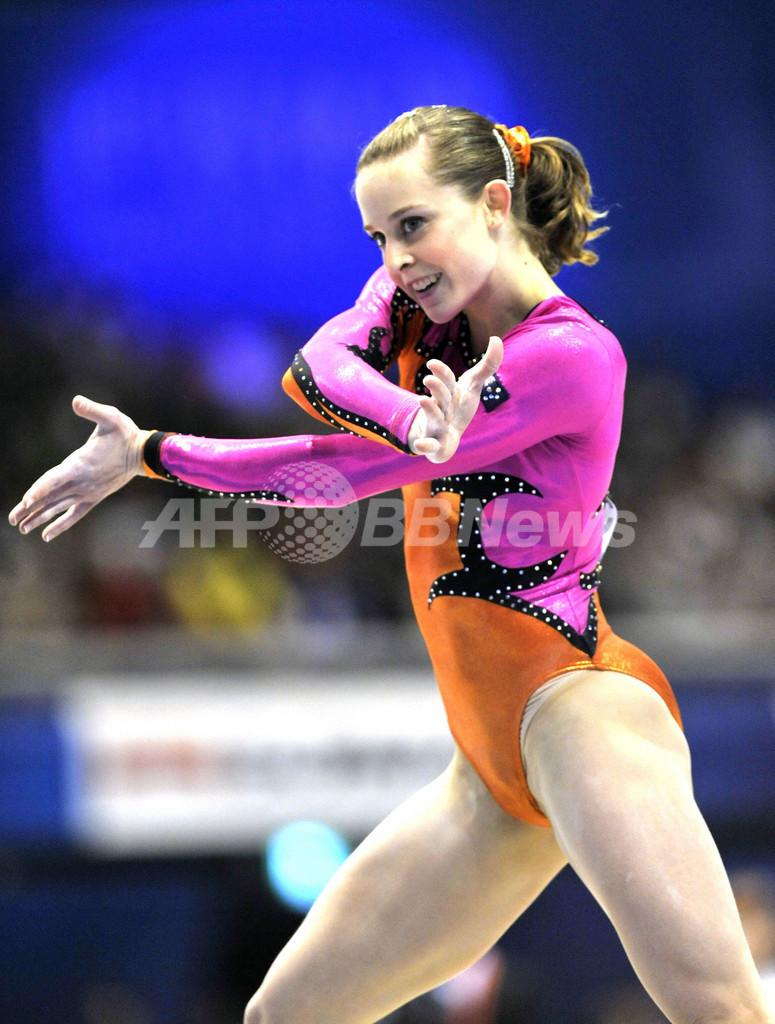 床運動の演技に臨むオーストラリアのローレン・ミッチェル(Lauren Mitchell、2011年10月11日撮影)。(c)AFP/Yoshikazu TSUNO