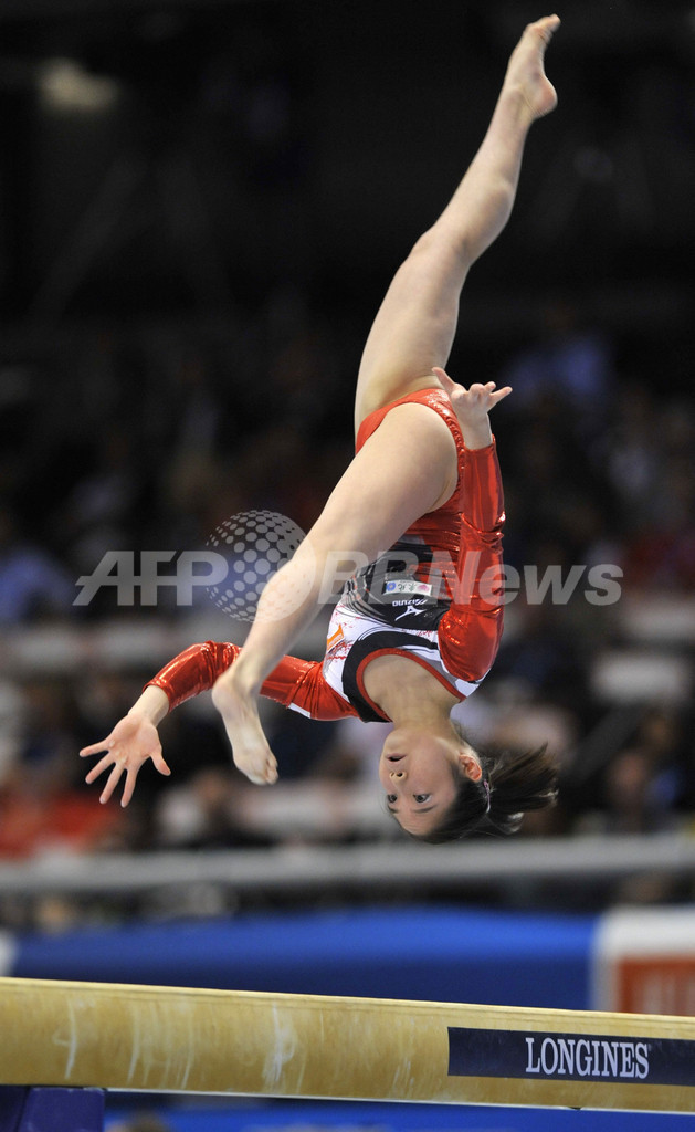 平均台の演技に臨む鶴見虹子(Koko Tsurumi、2011年10月11日撮影)。(c)AFP/Yoshikazu TSUNO