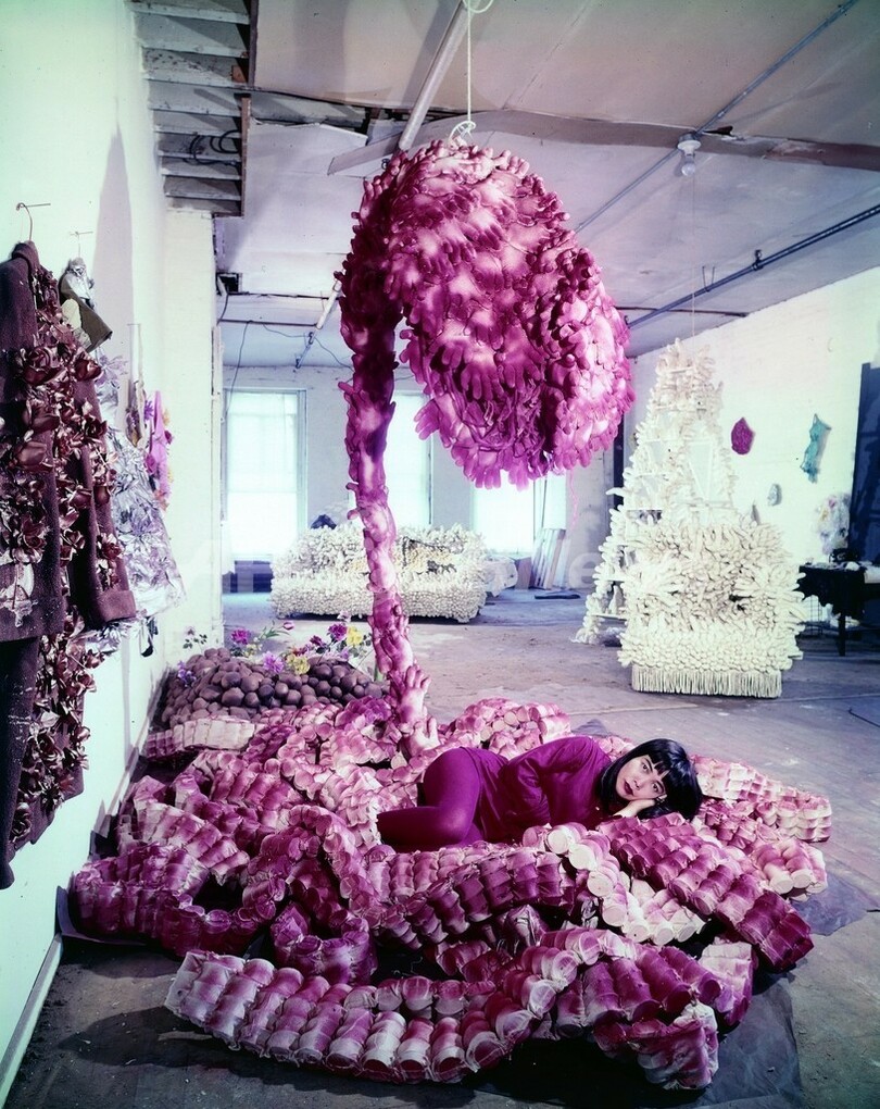 写真は、回顧展に出展された草間さん1962年の作品「My Flower Bed」。(c)Relaxnews/Centre Georges Pompidou, Musée national d’art moderne, Paris