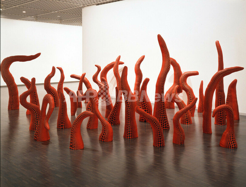 写真は、回顧展に出展された草間さん2004年の作品「再生の瞬間(Moment of Regeneration)」。(c)Relaxnews/Victoria Miro Gallery, Londres Ph. prise au National Museum of Modern Art, Tokyo/ Keizo Kioku