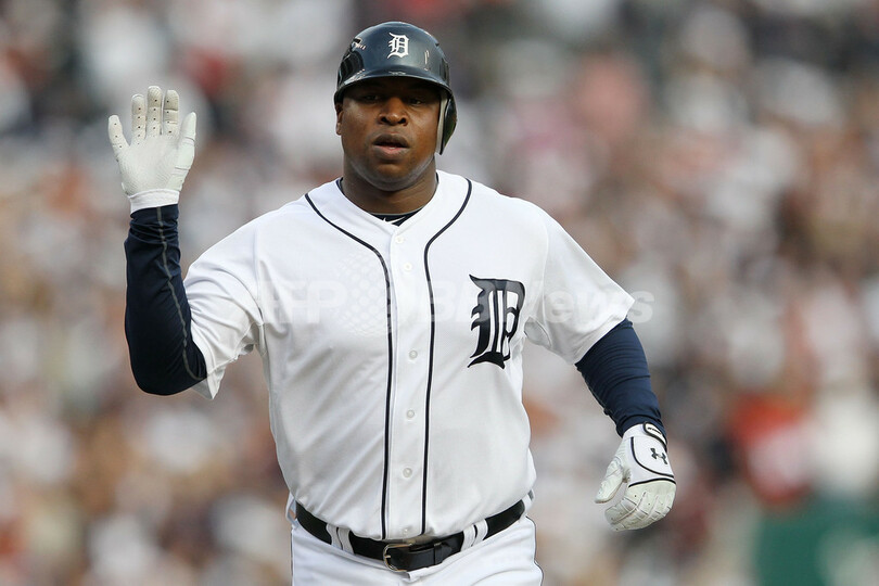 4回にソロ本塁打を放ったタイガースのデルモン・ヤング(Delmon Young 、2011年10月13日撮影)。(c)AFP/Getty Images/Leon Halip