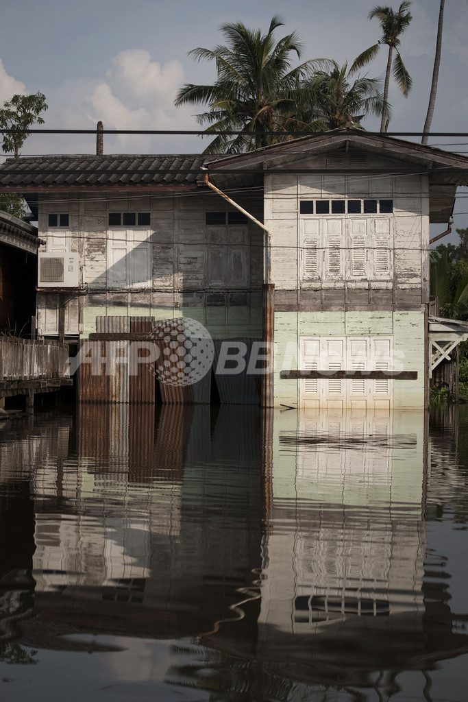 写真は、バンコク・チャオプラヤ川近くの浸水した住宅(2011年10月14日撮影)。(c)AFP/Nicolas ASFOURI