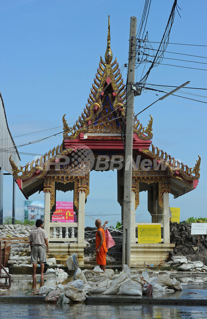 【10月15日 AFP】記録的な洪水に見舞われているタイ。首都バンコク(Bangkok)では、15日も洪水回避の努力が続けられている。河川や運河沿いには土のうが積み上げられ、前日に決壊した堤防の補修作業も進んでおり、これまでのところ、バンコク市内では大規模洪水の報告はない。
