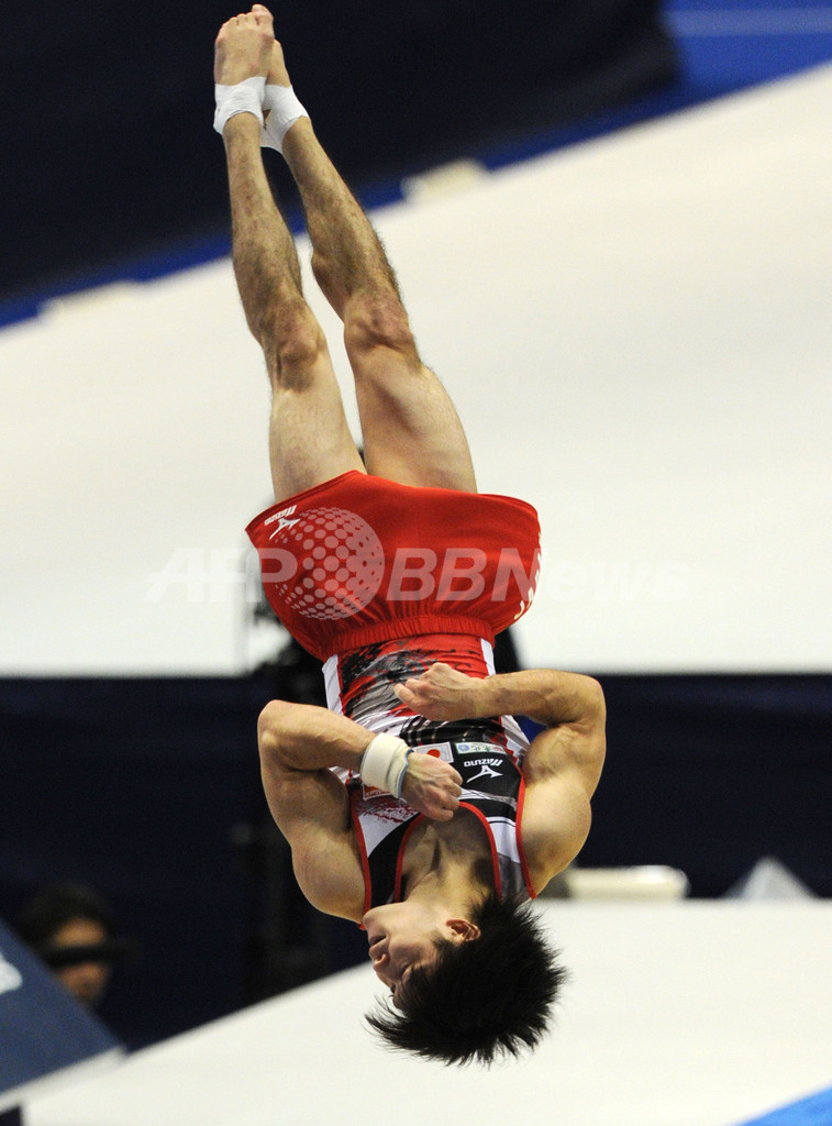 ゆかの演技に臨む内村航平(2011年10月15日撮影)。(c)AFP/KAZUHIRO NOGI
